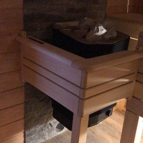 Парилка под ключ с электрической печью Tylo Sense Combi Pure 6, вагонка липа широкая категории экстра, полки абаш (задвижной нижний полок)