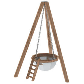Бревна подготовлены для долгой службы. Для подвесной применен яхтенный такелаж, способный удерживать мачты в шторм.