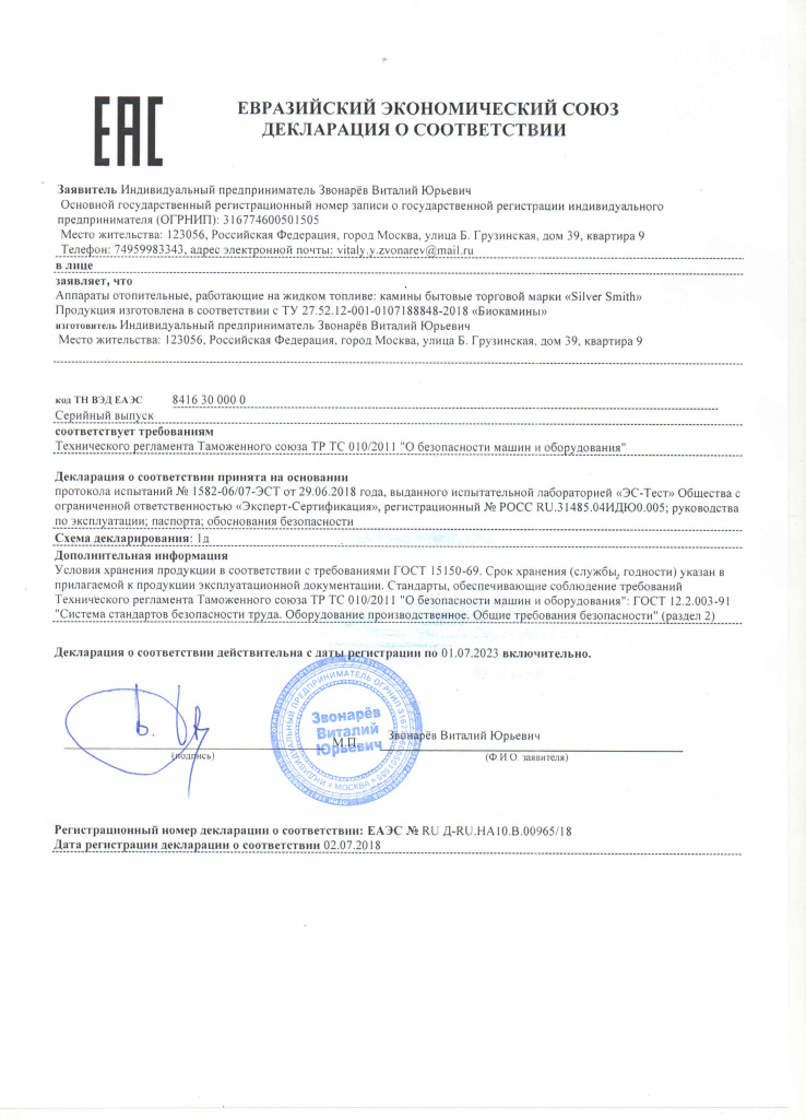 Инструкции, чертежи, документы - Биокамин Silver Smith Fame Ave. 700