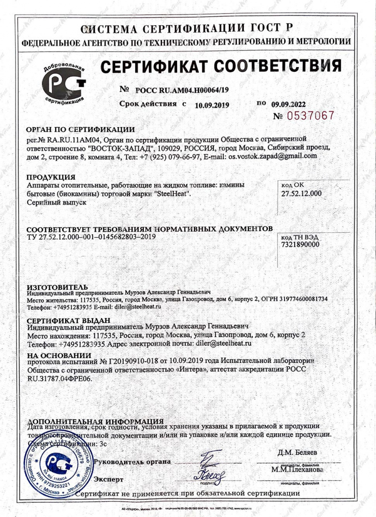 Инструкции, чертежи, документы - Биокамин встраиваемый в тумбу Steelheat Stand 800