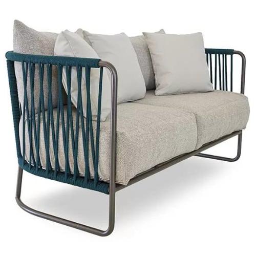 Новая коллекция Levante привносит очарование в сочетание и наложение различных материалов - металлической конструкции, ткани и роупа - с международным дизайном, но итальянской душой. Насыщенное поэтическое повествование о восходящем солнце, по сути, лежит в основе коллекции. Мастерство ремесленников и неповторимый стиль Tevet придают каждому предмету уличной мебели Levante сущность современного дизайна. Диван Levante - это симметричный двухместный диван с плавными линиями. Поддерживающая металлическая конструкция спинки украшена уникальной системой переплетающихся канатов. Мягкие подушки имеют классическую форму. Элегантный комфорт, идеально подходящий для отдыха на эксклюзивных площадках.