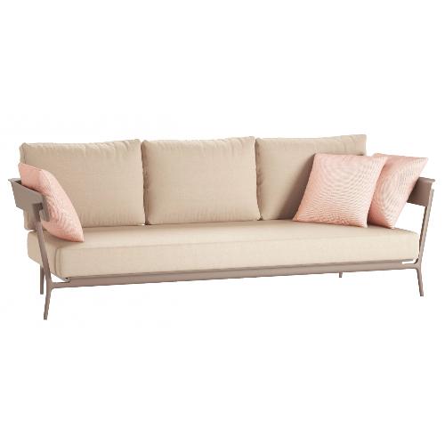 Трехместный диван Aikana изготовлен из прочного алюминия и комплектуется мягкими подушками. Он поможет создать уютную и расслабляющую обстановку. Стильный дизайн модели обеспечит пространству уникальность, так и манящую провести время за чтением книги или в кругу друзей и близких за чашкой чая. Диван может найти широкое применение в сфере Contract и подойдет для различных интерьеров и пространств на открытом воздухе.