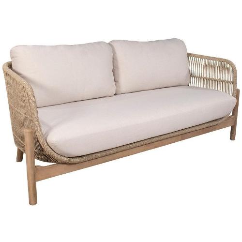 Крепкая алюминиевая рама оплетена синтетическим роупом. Обивка подушек выполнена из ткани олефин - прочного материала, устойчивого к воздействию грязи, влаги и УФ-лучей.