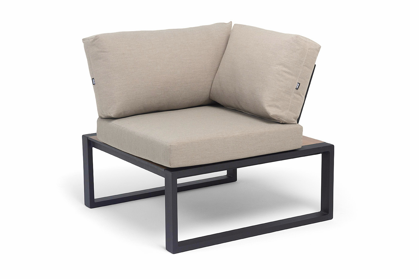 4SiS "Тулон" угловой модуль, каркас алюминий, HPL "дуб", черный муар, ткань бежевая 15052
