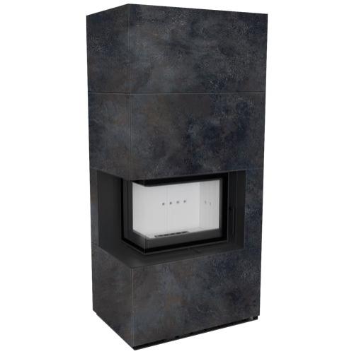 Каминокомплект Kratki Pro Floki в облицовке Ossido Nero, угловое стекло слева (светлая футеровка)