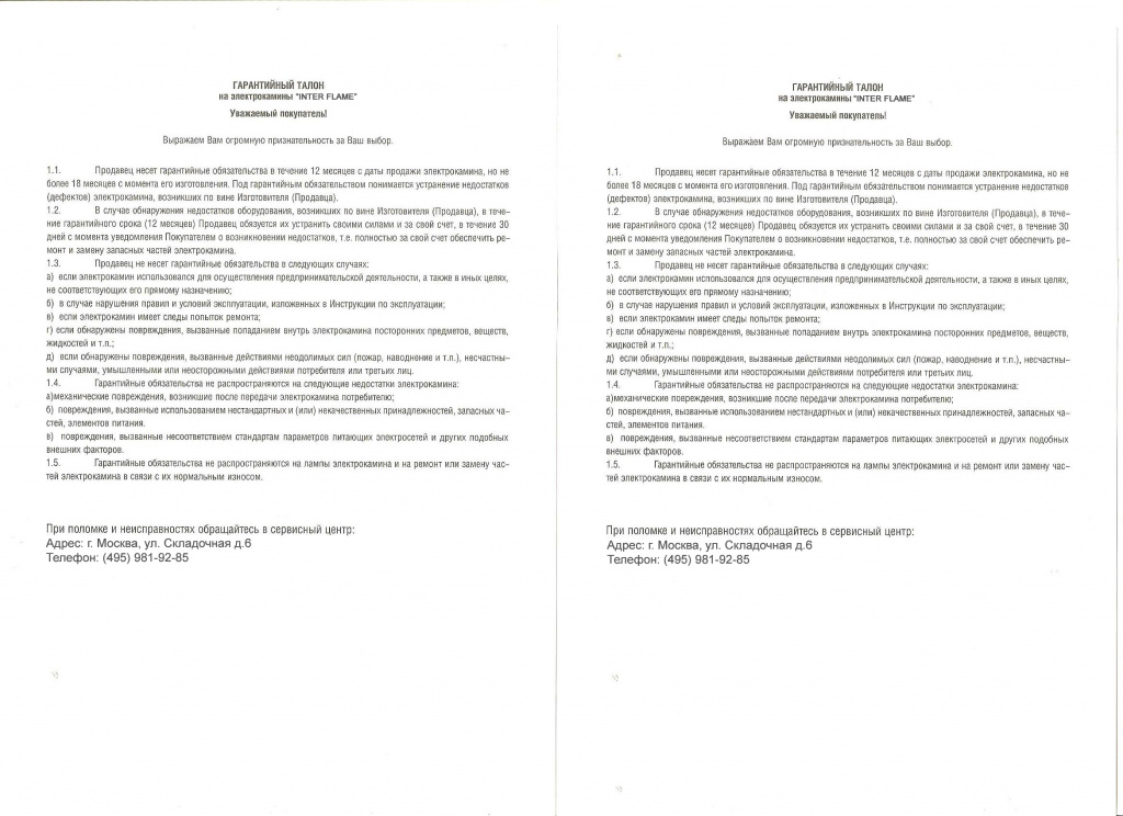 Инструкции, чертежи, документы - Каминокомплект InterFlame Леонардо с очагом Foton 42