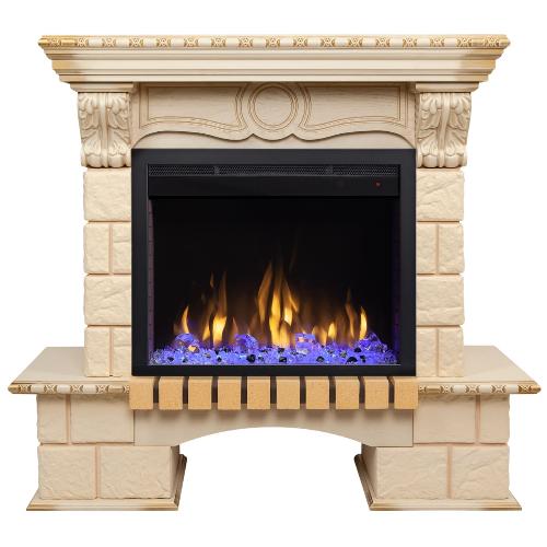 Каминокомплект RealFlame Bolero с очагом Saphir 25.5 (белый дуб с золотой патиной)