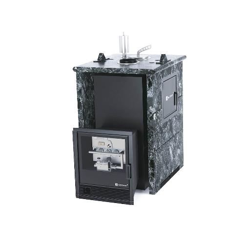 Банная печь ИзиСтим Анапа М2 в трехстороннем кожухе Пироксенит с газовой горелкой (САБК-40)