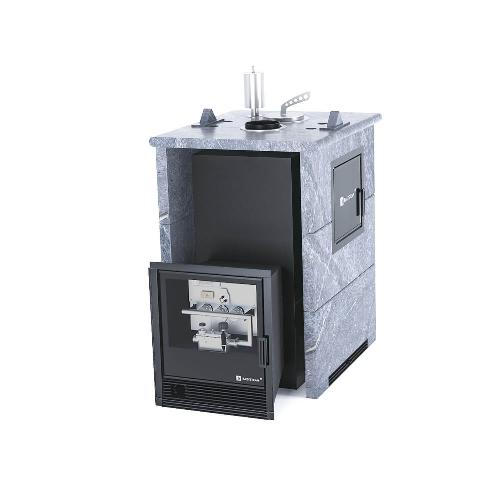 Банная печь ИзиСтим Анапа М2 в трехстороннем кожухе Талькохлорит с газовой горелкой (САБК-40)