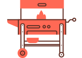 Основная зона приготовления включает четыре горелки из нержавеющей стали. Решетки выполнены из чугуна. Двойная крышка с теплоизоляцией. Встроенный термометр. Съемные поддоны для жира.