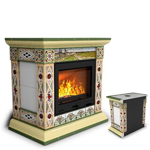 Готовый камин КимрПечь Билибин пристенный художественный (топка Ладья 600, цвет Весна)