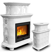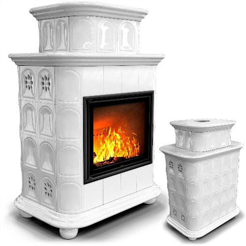 Готовый камин КимрПечь Прованс двухъярусный центральный с топкой Астов МЛ 700 (белый)