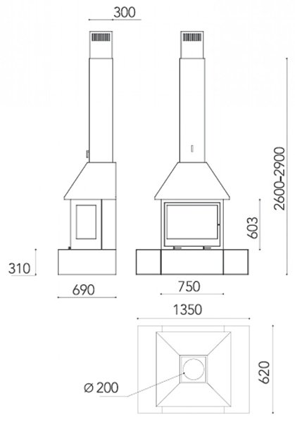 - Диаметр дымохода, мм 200