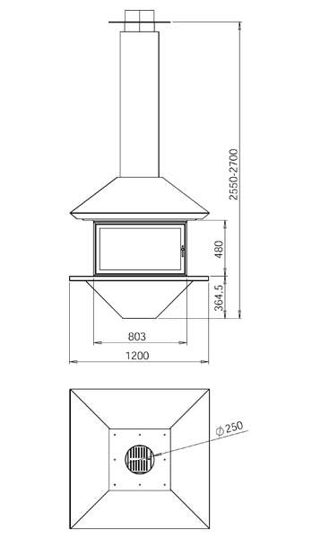 - Диаметр дымохода, мм 250