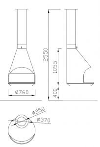 - Диаметр дымохода, мм 250