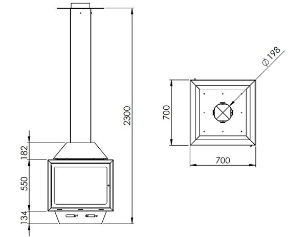 - Диаметр дымохода, мм 200