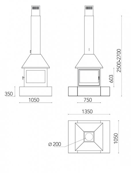 - Диаметр дымохода, мм 200