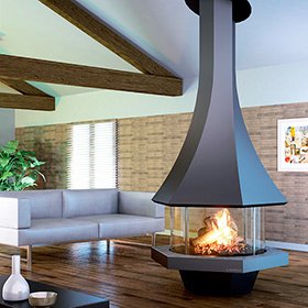 Готовый камин Bordelet Eolia 907 центральный со стеклом (труба 2.5 м)