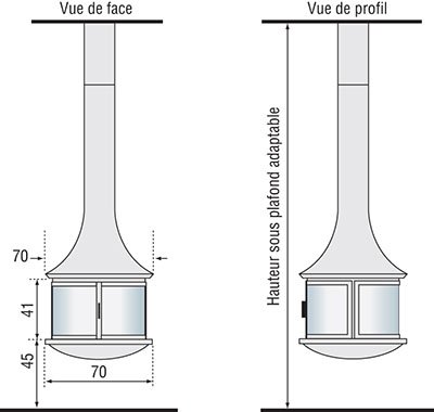 Готовый камин Bordelet Lea 998 центральный подвесной со стеклом