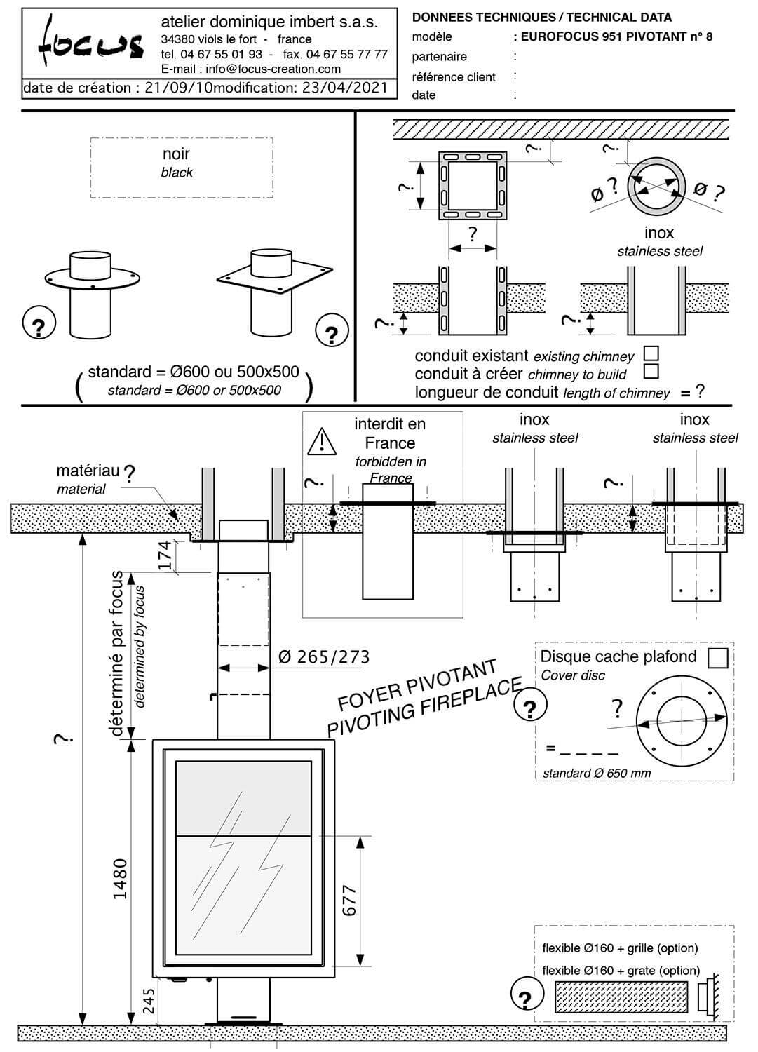 Инструкции, чертежи, документы - Готовый камин Focus Eurofocus 951 поворачивающийся