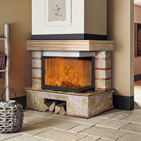 Каминная облицовка ЭкоКамин Ландыш угловой, Bidaser brown, балка ясень