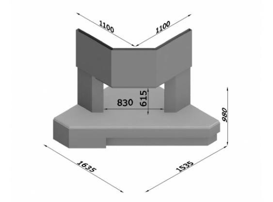 глубина - 1635 мм.