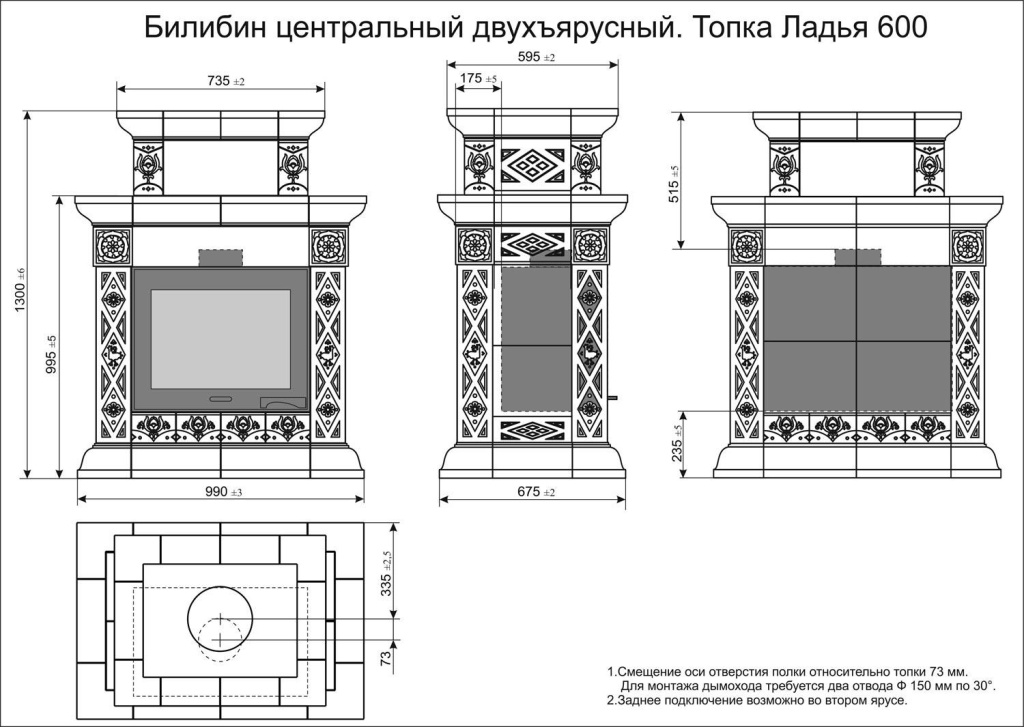 Инструкции, чертежи, документы - Облицовка камина КимрПечь Билибин центральный-двухъярусный художественный для топок 600