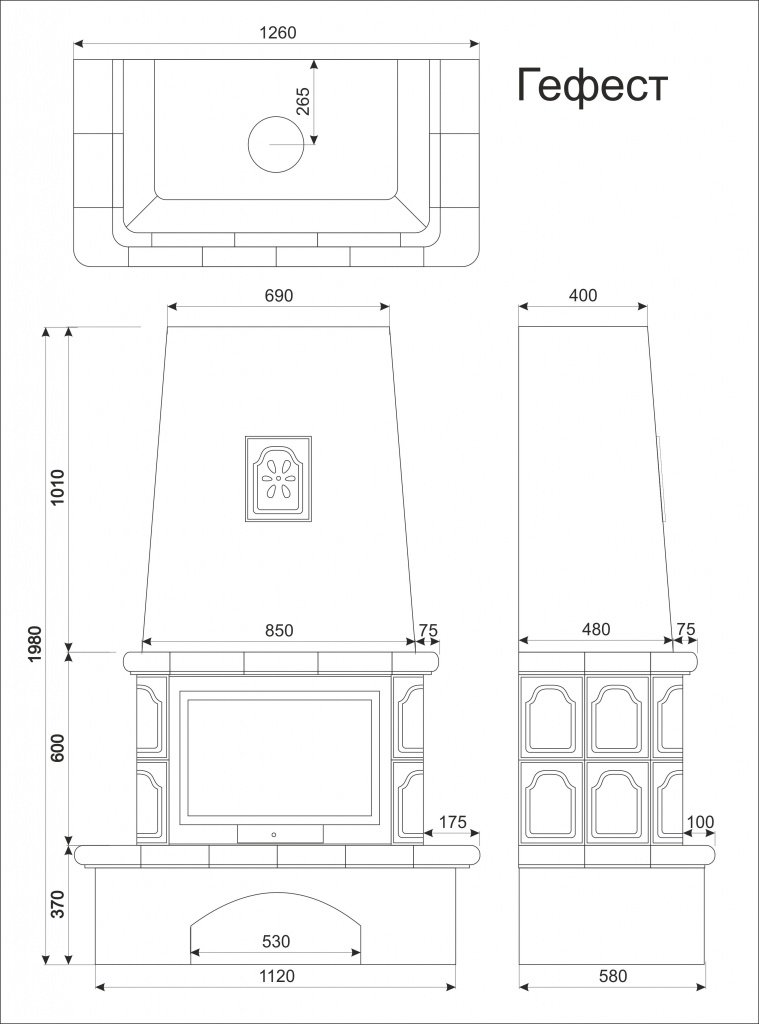 Инструкции, чертежи, документы - Облицовка камина КимрПечь Гефест пристенный