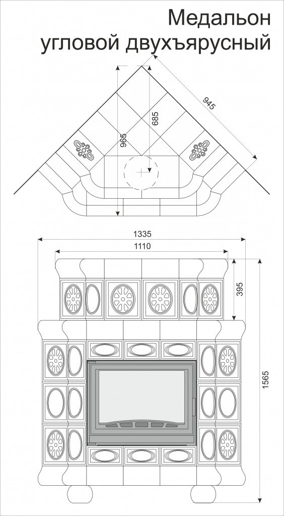 Инструкции, чертежи, документы - Облицовка камина КимрПечь Медальон угловой-двухъярусный для топок 600