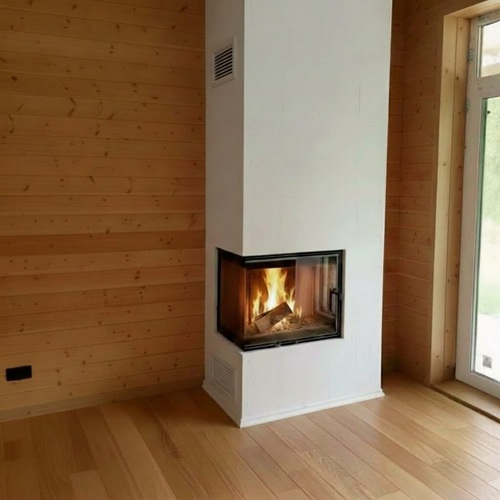 Камин подходит для монтажа в домах с деревянными стенами и перекрытиями