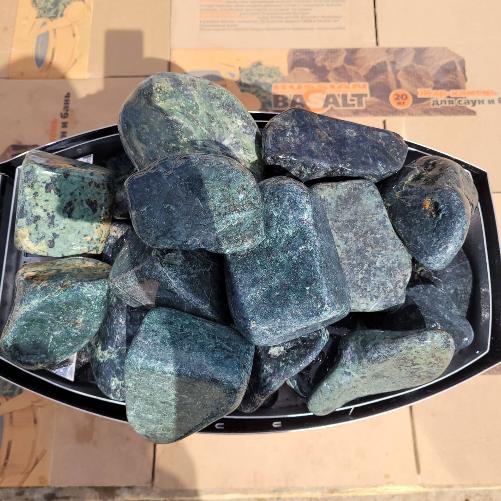 Камни для бани Бас Нефрит шлифованный 7-14 см (ведро 10кг)