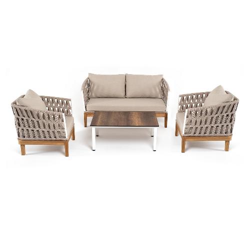 Лаунж-зона 4SiS Диего 4-местная плетеная из роупа со столиком Канны цвета дуб, основание дуб, роуп бежевый