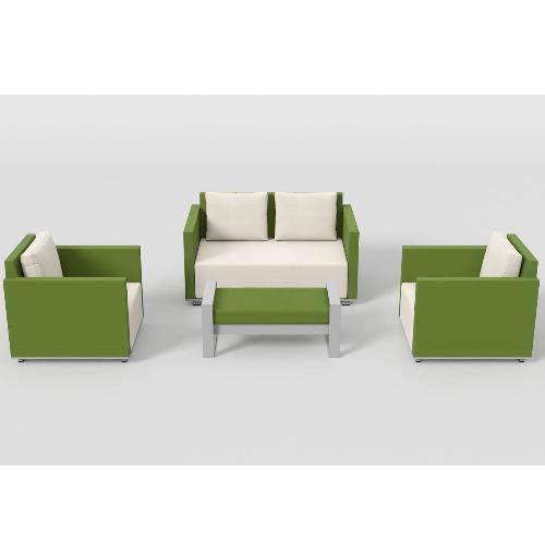 Лаунж комплект Gio - идеальный выбор для создания зоны отдыха на открытом пространстве. Алюминиевый каркас обеспечивает прочность мебели, а инновационное покрытие из материала Phifer - яркий дизайн и долговечность.