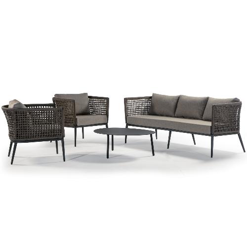 Комплект Cuba состоит из трехместного дивана, двух кресел и журнального столика, каркас которых выполнен из алюминия с порошковым покрытием. Кресла и диван имеют низкую спинку, которая создает одно целое с подлокотниками благодаря канатному плетению из полиэстера Ø4 мм. Объемные и мягкие подушки, созданные для максимизации комфорта, выполнены из олефина, устойчивого к пятнам и ультрафиолетовому излучению. Коллекция Cuba идеально подходит для тех, кто хочет произвести впечатление с помощью дизайнерской мебели в интерьере и на открытых площадках.