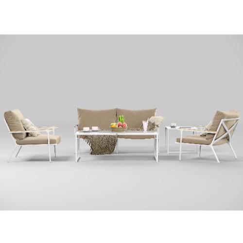 Цвет: каркас белый / подушки бежевые / столешница белая глянцевая