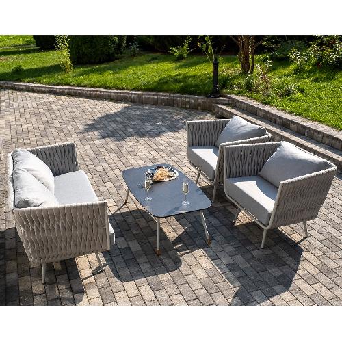 Лаунж-зона 4SiS Монако 4-местная из роупа со столом Верона (серый гранит), каркас светло-серый, роуп светло-серый