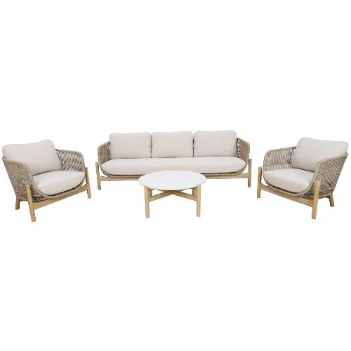 Talara - это современная коллекция садовой мебели из акации, выполненная в комбинации натурального веревочного плетения роуп, акации и светлых подушек. Цвет натуральной твердой древесины представляет собой натуральный цвет с мелкой текстурой, придающий древесине приятный теплый вид.