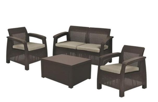 Комплект мебели Keter Корфу со столиком-сундуком (Corfu box set) коричневый