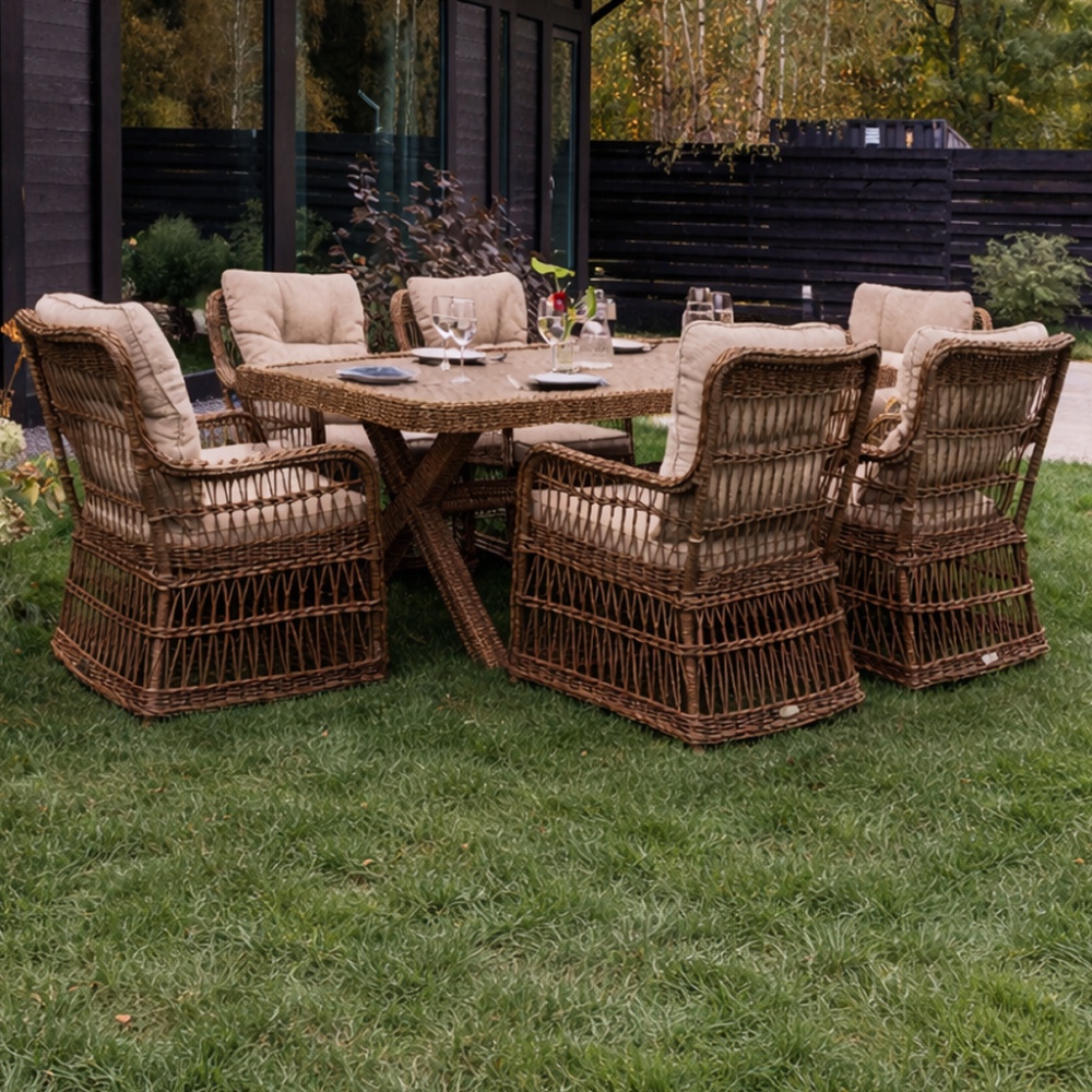 Обеденный комплект Royal Family ISABELLA из искусственного ротанга (коричневый)