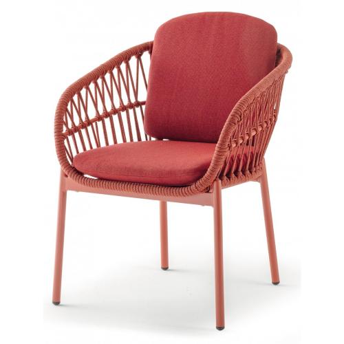 Уличное кресло Elba выполнено из окрашенного алюминия со спинкой и подлокотниками, покрытыми плетением синтетического каната (роупа), создающего красивый рисунок. Сиденье и спинка укомплектованы съемными подушками из олефина с набивкой из быстросохнущей пены. Это кресло идеально адаптируется к современным условиям, таким как летние площадки кафе, баров, отелей и даже частным террасам.