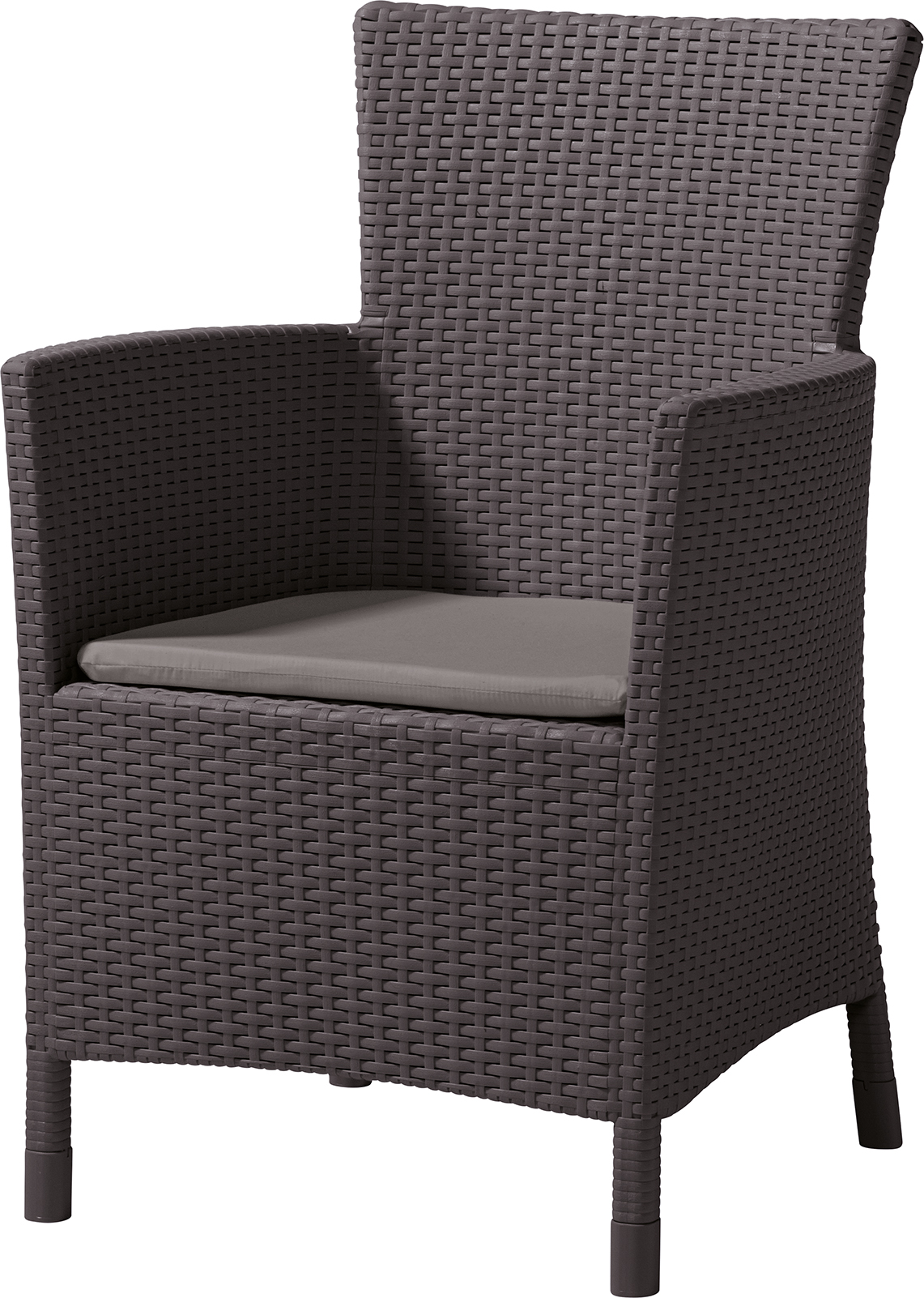 Iowa - это элегантное и комфортное садовое кресло, предлагаемое в комплекте с подушкой. Широкая гамма цветов и оригинальная, подобная ротанговой, фактура поверхности придется по вкусу даже самым требовательным пользователям. Изготовлено из стойкой к воздействию УФ-излучения и погодных условий высококачественной пластмассы. Очень просто собирается и легко чистится.