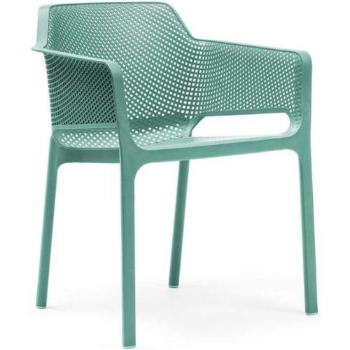 Net – это моноблочная модель из стеклопластика с перфорированным рисунком, который равномерно распределен по трехмерной поверхности сиденья. Материалы не подвержены воздействию УФ-излучения, благодаря этому кресло долго сохраняет свой первоначальный вид и не выцветает на солнце. Кресло оснащено нескользящими накладками на ножках, поэтому его можно разместить возле бассейна, а также оно может штабелироваться, что облегчает его хранение.