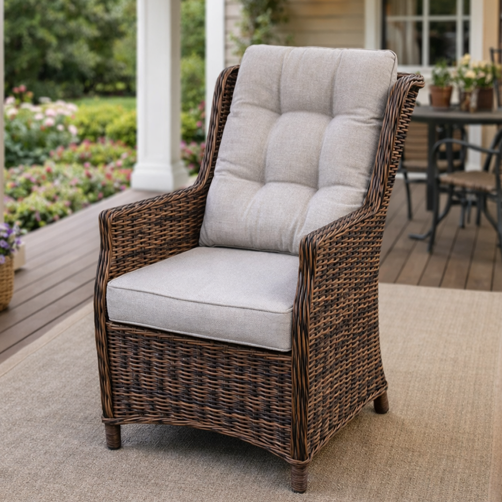 NICOLE в коричневом - это не просто кресло. Это место, где хочется остаться надолго. Укрыться с книгой, задремать под шелест листвы или просто сидеть и смотреть на закат. Оно создано для тех, кто умеет отдыхать красиво.