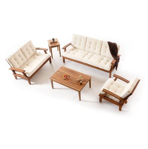 Trend представляет собой комплект, состоящий из кресла, 2-х и 3-х местного дивана, которые обеспечивают удобство и комфорт во время сидения и двух кофейных столиков разных размеров. Коллекция позволяет создать бесконечные комбинации для зоны отдыха на открытом воздухе.