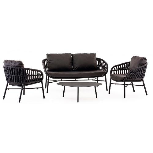Tahiti - это современный садовый комплект, который создает открытую зону отдыха, подходящую для четырех человек, состоящий из двухместного дивана, двух кресел и журнального столика. Мебель имеет алюминиевый каркас с порошковым покрытием. Диван и кресла дополняются переплетением из полиолефинового каната и подушками на сиденье и спинке. Чехлы на подушках выполнены из текстилена, устойчивого к воздействию ультрафиолетовых лучей и плесени. Журнальный столик Island Big выполнен из алюминия. Столешница - алюминиевый лист толщиной 5 мм.