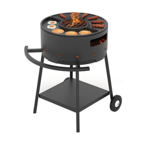 Мангал Везувий Дачник, изготовленный из стали толщиной 2 мм, имеет круглую форму. Он предназначен для совместного использования с чугунной плитой Везувий Gurman диаметром 45 см.