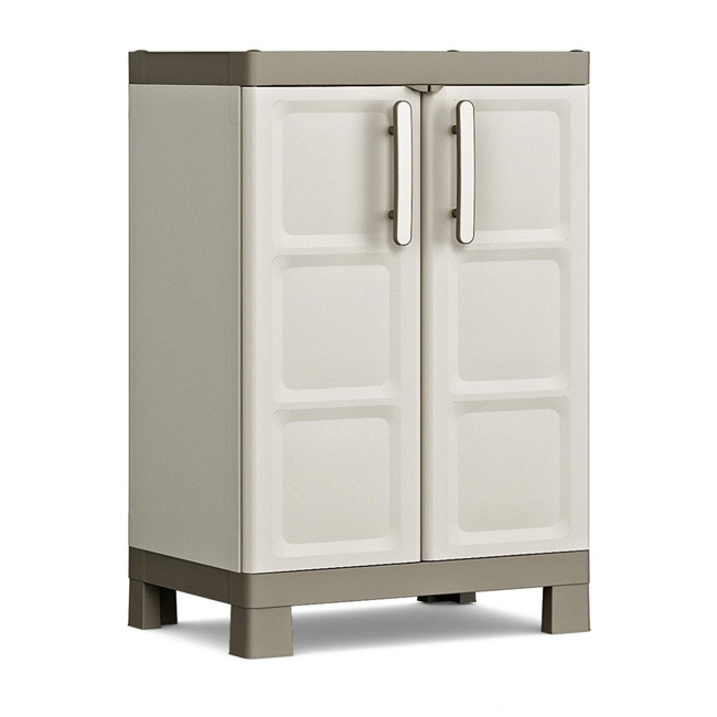 Температурный режим использования -5°C to +40°C. Это способствует долгому сроку службы и делает пластиковые шкафы подходящей мебелью для хранения хозяйственного инвентаря, садовой мебели, различного оборудования, бытовых аксессуаров и предметов в помещении.