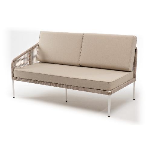Правый модуль 4SiS Канны плетеный из роупа, каркас алюминий белый муар, роуп бежевый круглый, ткань бежевая 15052