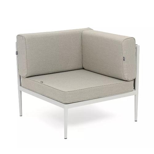 Угловой модуль плетеный из 4SiS Касабланка, каркас алюминий светло-серый (RAL7035) муар, роуп серо-коричневый 23мм, ткань бежевая 15052