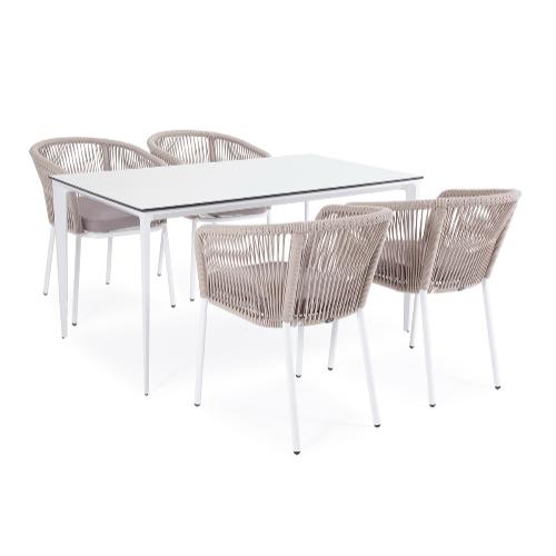 Oбеденная группа 4SiS Малага на 4 персоны со стульями Марсель, каркас белый, роуп бежевый